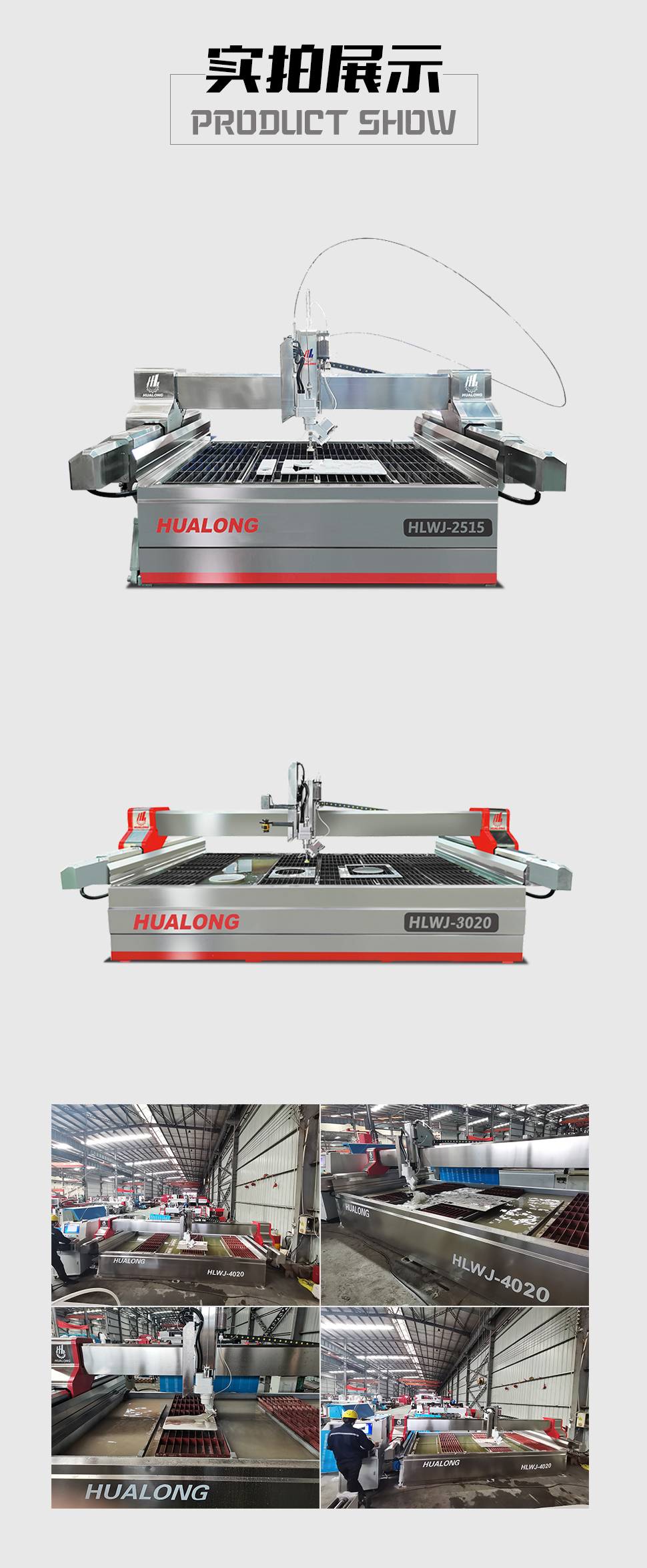 HLWJ-2015/3020/4020 三轴/五轴高压水刀切割机,是一种工业切割机器,能够使用极高的高压水射流或水与磨料物质的混合物切割各种材料。切割金属、石头或玻璃等硬材料,而纯水射流和纯水切割是指不使用添加磨料的水射流切割,通常用于木材或橡胶等较软的材料。